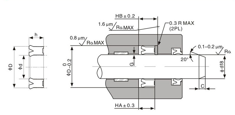 密封效果:U型圈在低壓情況下,只靠唇部的過盈變形產(chǎn)生密封,因接觸面小,摩擦力相對較低。隨著壓力升高,唇口彈性變形量增加,拉伸壓縮及彎曲應(yīng)力增加,U型圈徑向壓緊力自動變大與密封面接觸從而保證高壓狀態(tài)下具有良好的密封性。不同的油封有不同的溝槽設(shè)計方式,應(yīng)根據(jù)使用條件