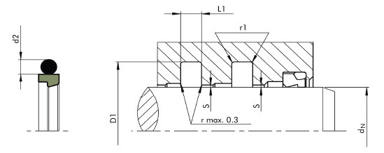 由一個(gè)抗磨的填充聚四氟乙烯(PTFE)環(huán)和O形橡膠密封圈組成。O形圈提供預(yù)緊力,可對(duì)PTFE方形環(huán)的磨損起補(bǔ)償作用。適用于液壓缸活塞的密封,為雙向密封。一般與導(dǎo)向環(huán)配套使用。孔徑小于40的規(guī)格, 應(yīng)采用分體式溝槽。