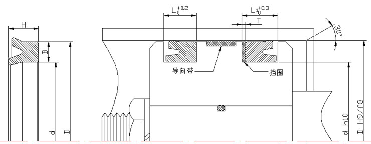 用于往復(fù)運動液壓油缸活塞桿的密封。當(dāng)液壓缸工作壓力大于 10MPa 時建議使用擋圈